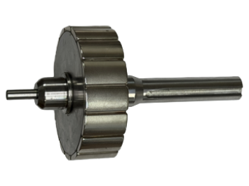 The motor is constructed in a pancake style, meaning that it takes less time to manufacture, and the profile of the motor is much slimmer at 2” long. The hub mount style of the motor is what allows for the stacking of the mechanical rotating drums.